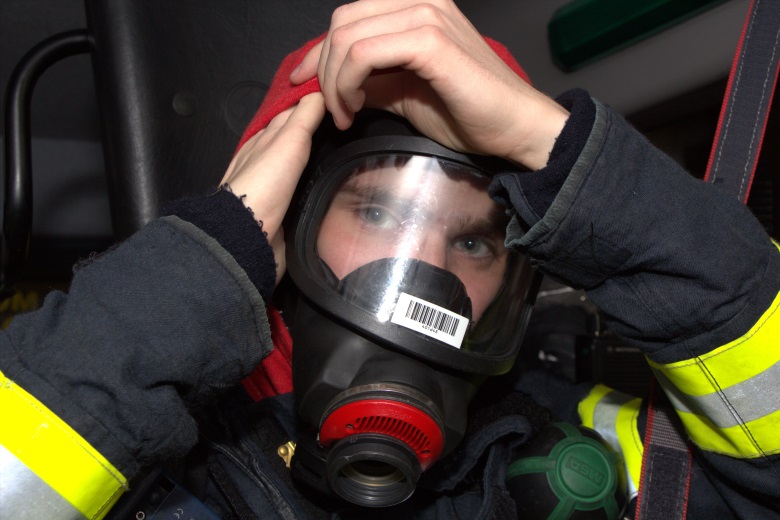 | 7. Wärend der Fahrt gilt aufgrund der Nutzung von Sonder- und Wegerechten, kenntlich gemacht durch Blaulicht und Martinshorn, besondere Aufmerksamkeit und Vorsicht gegenüber anderen Verkehrsteilnehmern. Bei Brandeinsätzen rüstet sich der so genannte Angriffstrupp während der Fahrt bereits mit schwerem Atemschutz aus. Bei technischen Hilfeleistungen ist in den meisten Fällen kein Atemschutz erforderlich. |