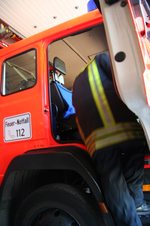 | 3. Anschließend wird von der eintreffenden Kameraden die Persönliche Schutzausrüstung angelegt und das Fahrzeug besetzt. |