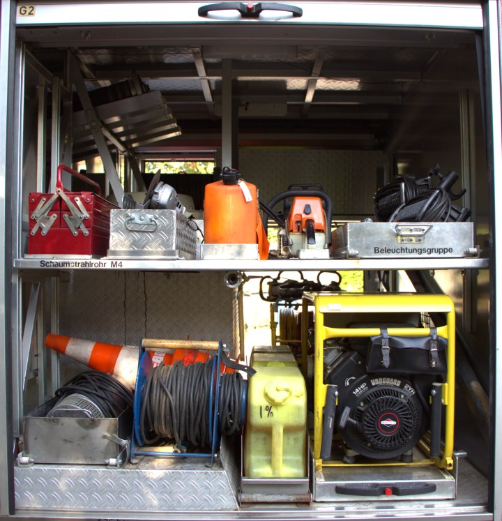 Funkrufname: Florian Mönchengladbach 05/HLF10/01 Baujahr: 1995 Fahrgestell: Mercedes Aufbau: Metz Besatzung: ein Gruppenführer und acht Feuerwehrmänner (1/8) |