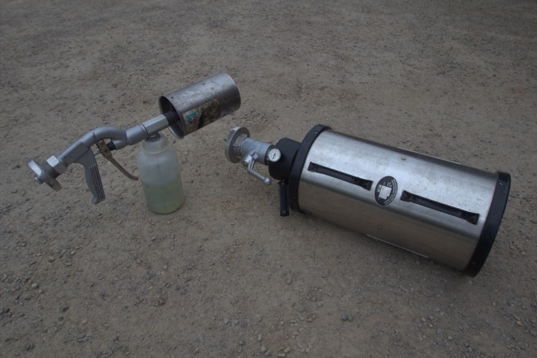 Schaumpistole / SchaumrohrDie Schaumpistole dient zum Löschen von Bränden, bei denen eine geringe Schaummenge benötigt wird. Sie wird einfach an ein C-Rohr oder den Schnellangriff angekuppelt und schon kann man damit Schaum produzieren. So geringe Mengen werden häufig bei PKW oder Containerbränden eingesetzt um dem Brand den Sauerstoff zu entziehen und so das Feuer zu ersticken. |