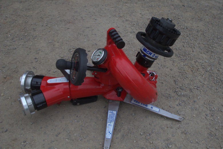 WasserwerferDer tragbare Wasserwerfer wird bei größeren Bränden, wenn eine große Wassermenge erforderlich sind zur Brandbekämpfung eingesetzt. Desweitern wird er zum Niederschlagen von Gasen/Dämpfen eingesetzt. Dieser Wasserwerfer hat einen Leistungsbereich von 600 l/min bis hin zu 4000 l/min bei 6 bar Wasserdruck. Hierbei ist es möglich stufenlos von einem Vollstrahl bis hin zu einem 135° Sprühstrahl einzustellen. |